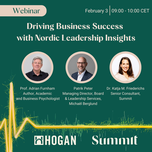 Many leadership models promise clarity. Few deliver it in complexity. Nordic leadership has gained global attention not because it is fashionable, but because it consistently performs in environments defined by uncertainty, flat hierarchies, high trust, and accountability. In our upcoming webinar, Adrian Furnham, Patrik Peter, and Dr. Katja M. Friederichs unpack what truly differentiates Nordic leadership from other dominant leadership paradigms. Drawing on Summit’s latest White Paper on Nordic Leadership, we explore what works, what does not, and what often gets oversimplified when Nordic leadership is exported into international contexts. This is not about copying a regional style. It is about understanding which principles travel well and which require adaptation. If you lead across borders, cultures, or shifting power structures, this conversation will challenge familiar assumptions and sharpen your strategic leadership choices.
